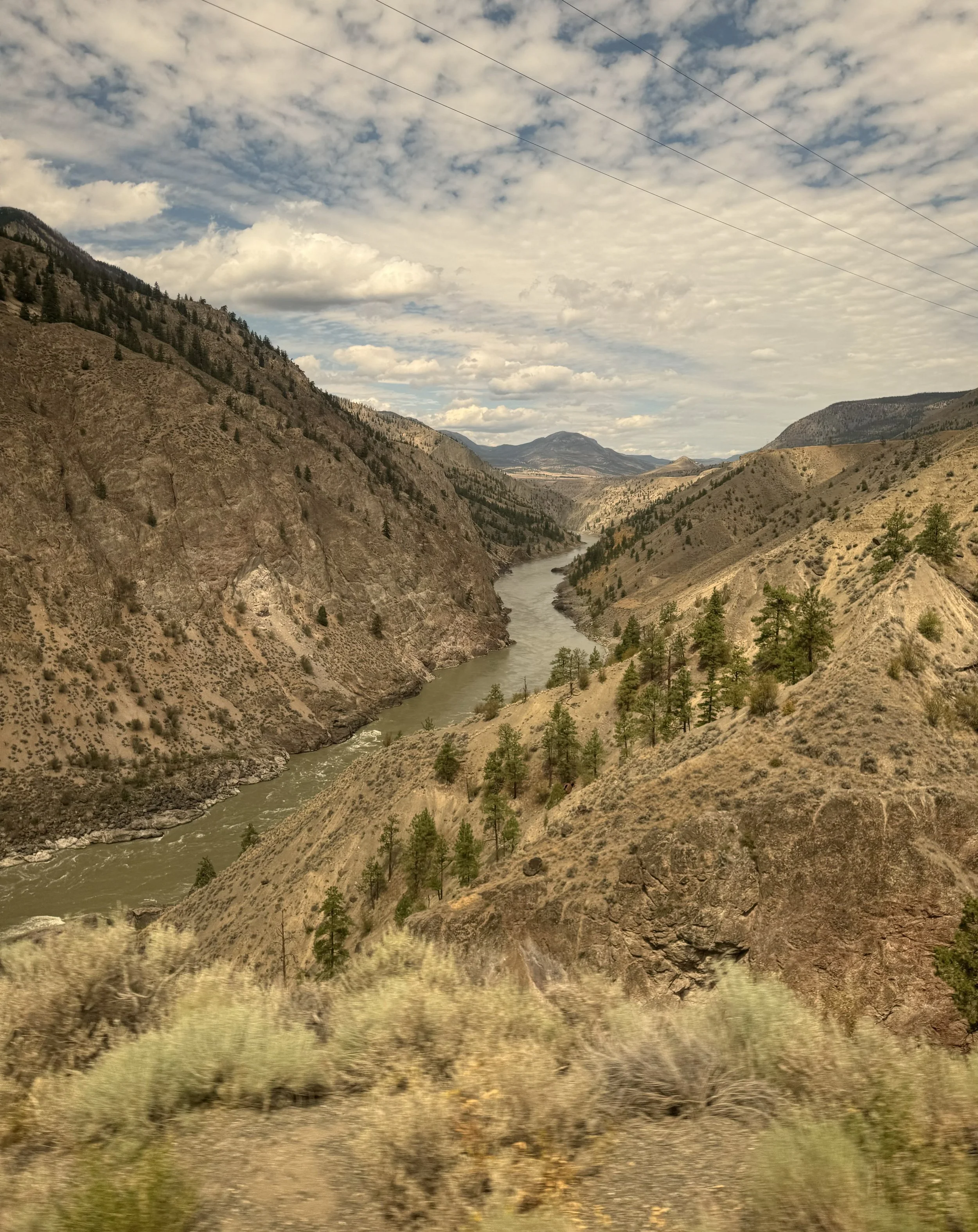 With no stops other than lunch our butts tired of sitting. Most bus tours stop every two hours but with our newbie driver and host having never done it—we were on an ‘adventure’. ( I don’t recall many places along the way a bus load of people could have stopped anyway.) We did have a crisis moment when somehow the washroom door got locked with no one inside. The driver saved the day and broke in. It’s possible to get excited about the smallest of things. (Really not so small I guess when trapped on a bus.) The terrain from Quesnel to Whistler begins in an arid, barren landscape then slowly shifted to forested. After lunch the highway was slower and curvy.