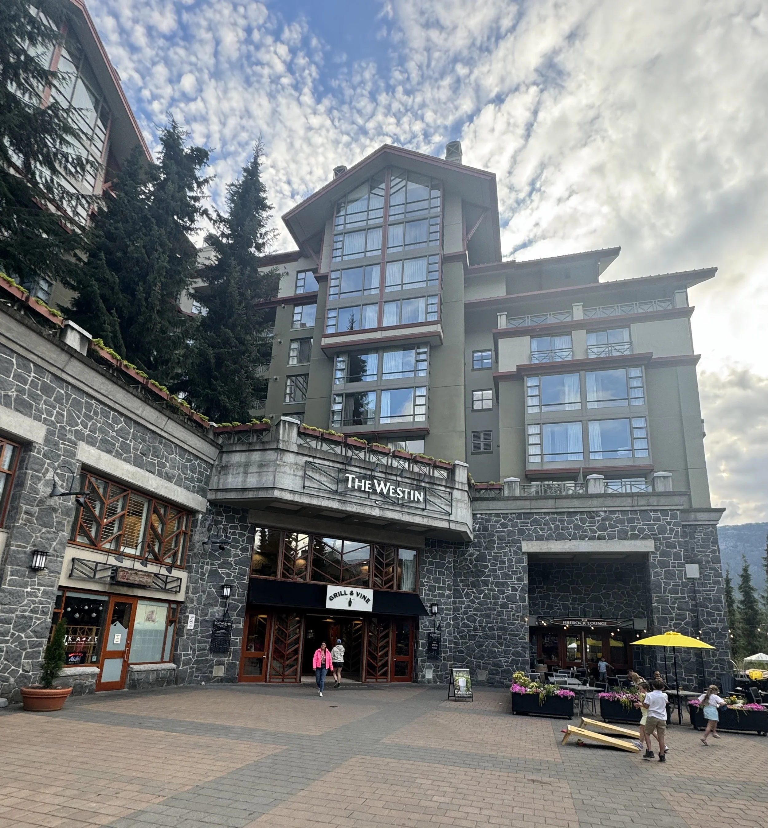 (Later while checking in our hotel in Whistler we met other Rocky Mountaineer evacuees who’d been at the Crimson Hotel in Jasper downtown. We had stayed there two year ago while with the Rocky Mountaineer. They were loaded onto a school bus all the way to Kamloops, the first stop on the ride from Vancouver, then on to Whistler. School buses have no AC, no bathroom, no electric outlets. We felt strangely lucky.)