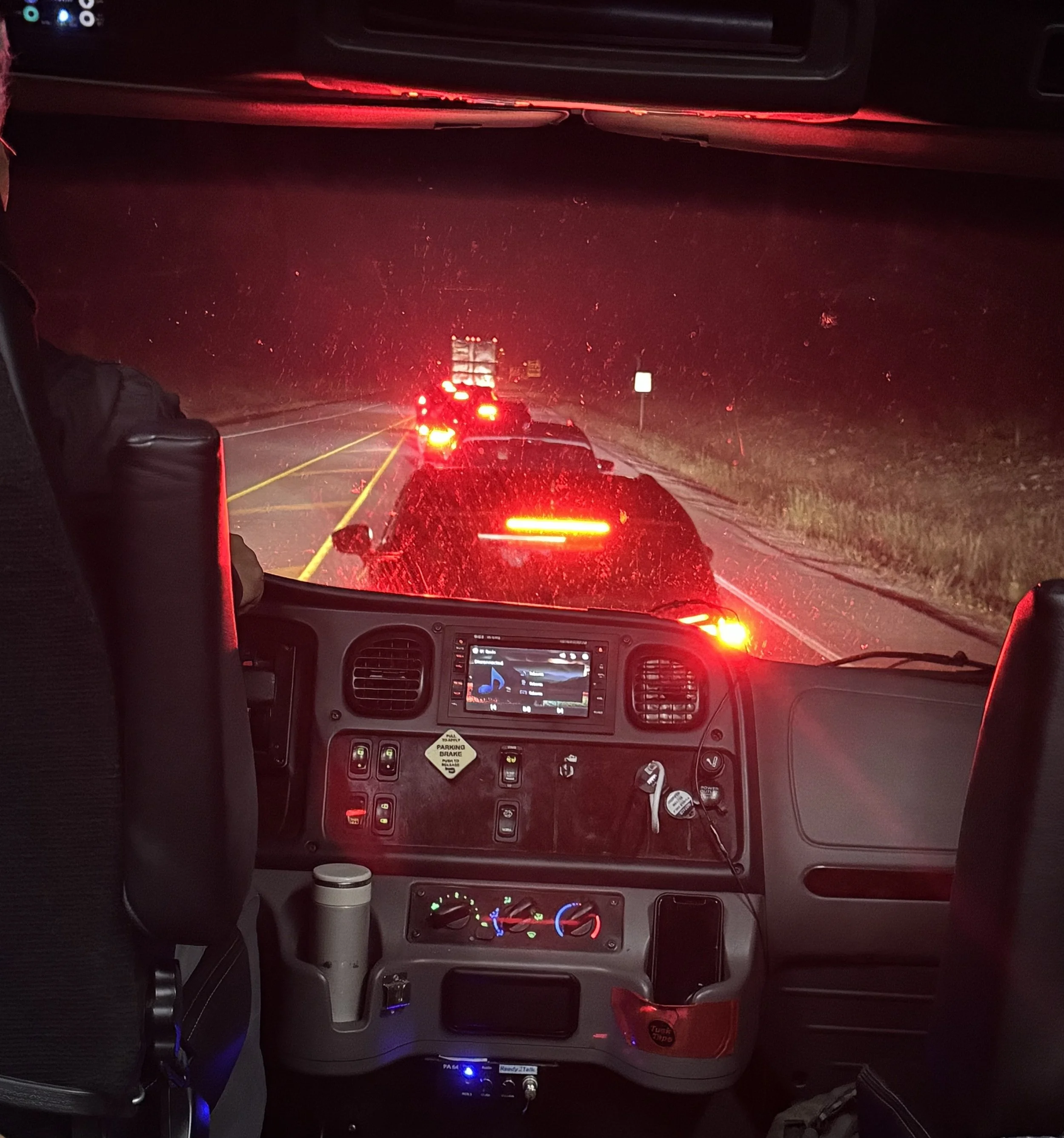It was quiet on the bus as we all stared at the tail lights ahead.